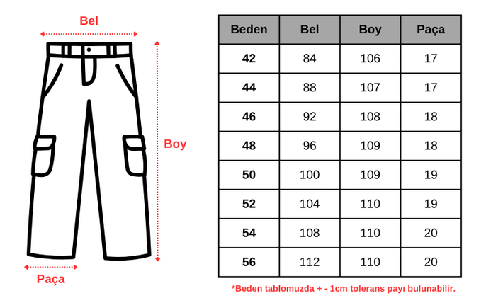 | Beden | 42, 44, 46, 48, 50, 52, 54, 56 |
